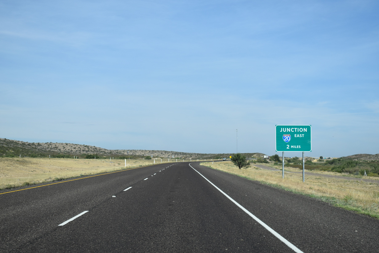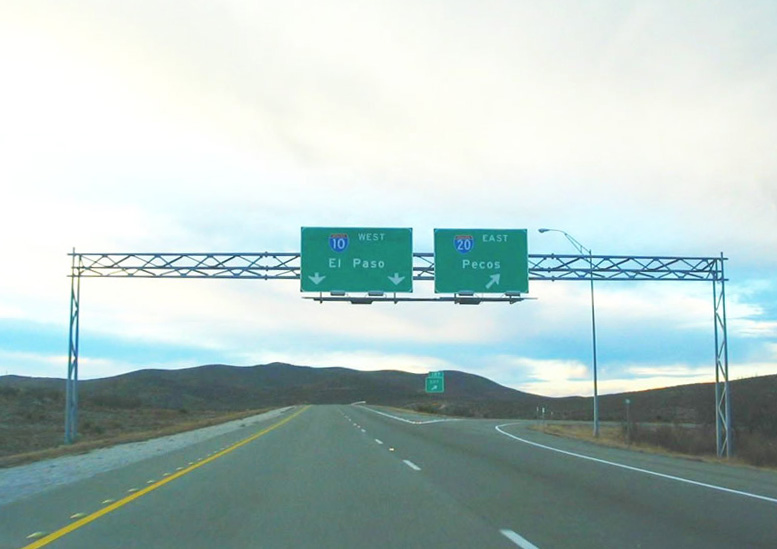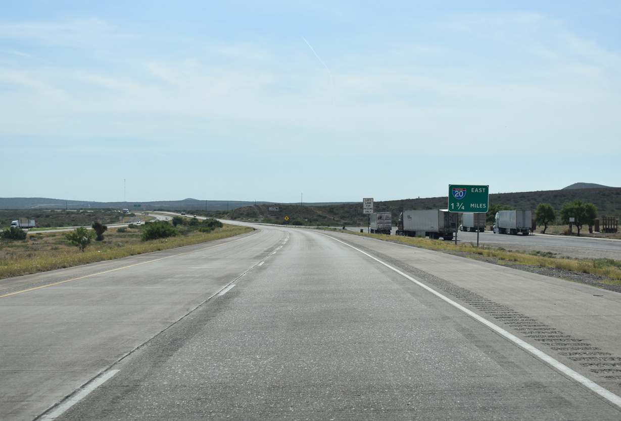 Interstate 10 proceeds north to meet IH 20 a short distance beyond the diamond interchange with Giffin Road. IH 20 travels northeast toward Pecos, Monahans and Odessa-Midland. 08/05/19