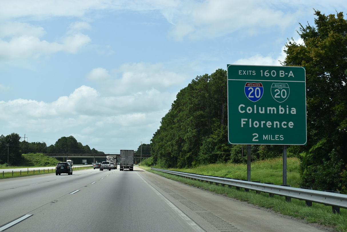 Starting in the vastness of western Texas, then emerging in the southeastern states as a major highway through several metropolitan areas, Interstate 20 provides a connection through the northern tier of the Deep South states. It originates in West Texas and passes through the Dallas-Forth Worth area en route to Shreveport, Birmingham, Atlanta and Columbia before concluding in Florence, South Carolina.