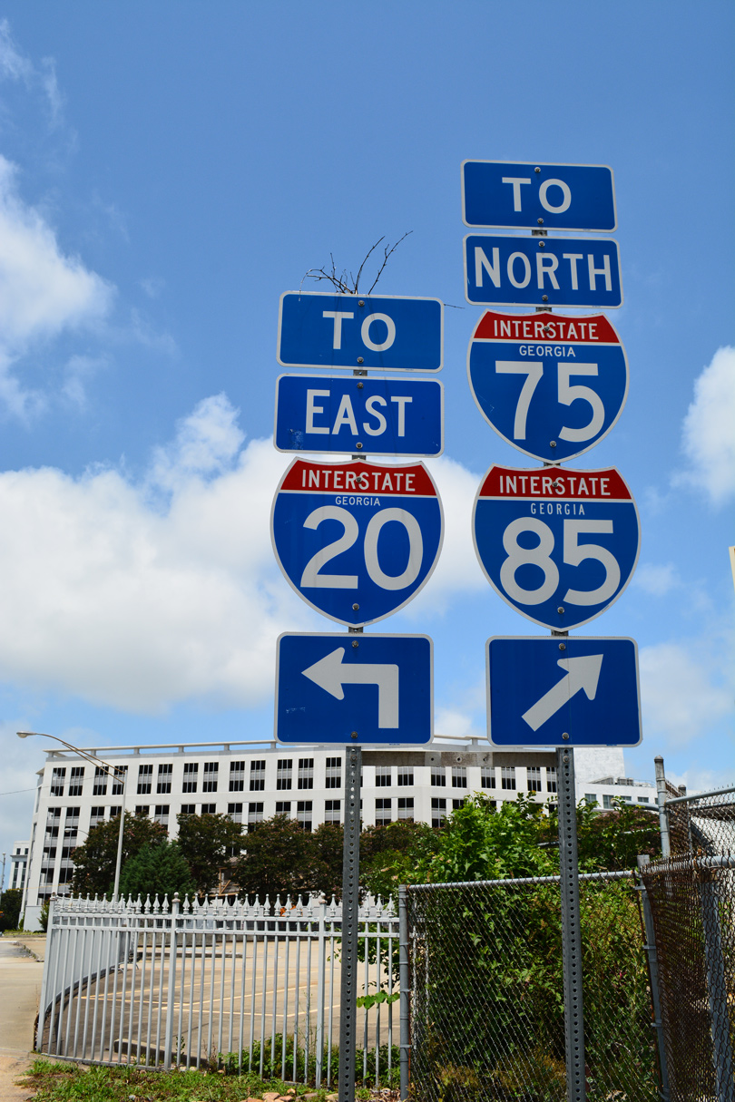 A short distance east into the Peach State, Interstate 20 enters the sprawling Atlanta metropolitan area. The freeway expands to six lanes initially, and eventually 16 lanes overall through areas south of Downtown Atlanta. The Capitol Hill Interchange joins I-20 with the Downtown Connector (I-75/85) near the Georgia State Capitol. Shifting southward by Decatur, I-20 passes by the unconstructed east end of I-420, an urban loop previously proposed along the Lakewood Freeway (SR 166).