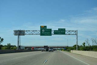 South on I-41 at Wis 29 and Wis 32 at the high speed systems interchange completed in early 2015. Local traffic continues onto Shawano Avenue while regional traffic exits towards Wausau. Photo by Peter Johnson (06/17/15).