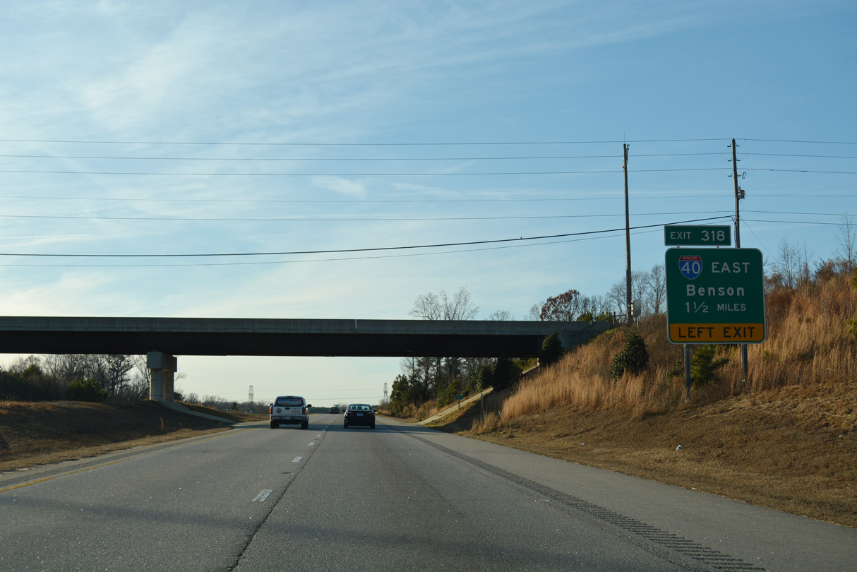 Future Interstate 42 corridor signs were posted at the eventual west end of the route along the Clayton Bypass in 2016. 12/15/16