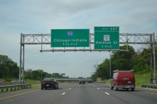 Traveling inbound on the Dan Ryan, I-94 heads 12 miles north to the Jane Byrne (Circle) Interchange, where the Ryan and Kennedy Expressways (I-90/94) meet the Eisenhower Expressway (I-290). I-94 east converges with I-80 and the Tri-State Tollway (I-294) 11 miles to the south. Photo by Brian Dowd (12/23/02).