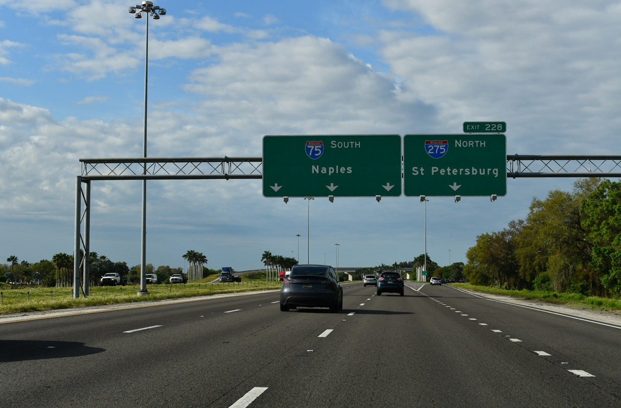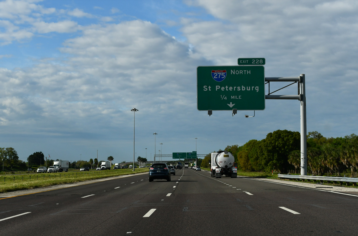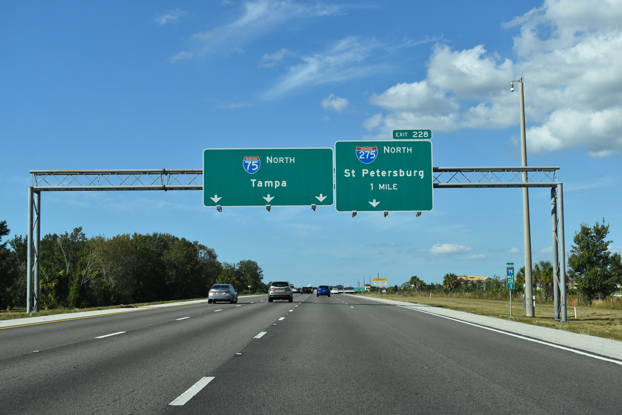 Interstate 275 joins Southwest Florida with St. Petersburg and Clearwater while I-75 continues north toward Tampa via Brandon. 10/23/22