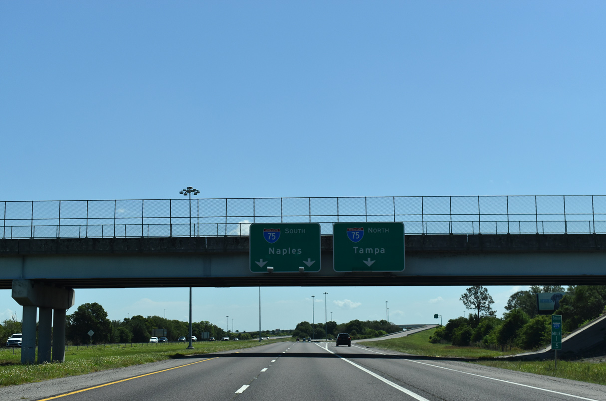Naples, where I-75 ended until signs went up along Alligator Alley in 1992, remains the control city for I-75 south from Tampa. December 2000
