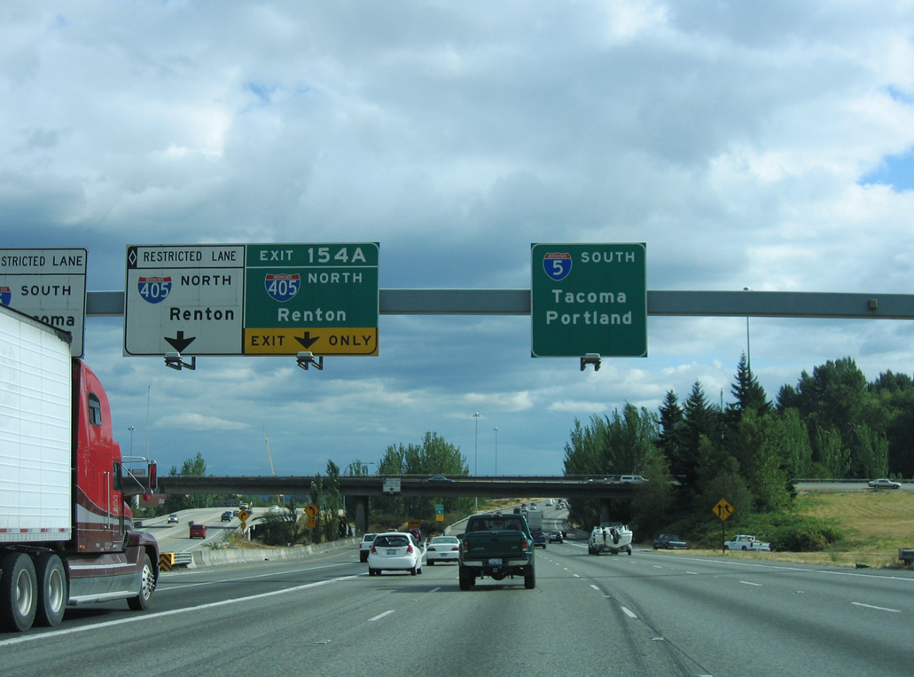 The original proposal for Interstate 405 around greater Seattle was submitted to the American Association of State Highway Officials (AASHO) in a letter dated July 14, 1958.1 Initial stretches were designated as Washington State Route 405 between Renton and Tukwilla. The first section opened to traffic in September 1965. SR 405 was redesignated as I-405 with its completion by 1971.2