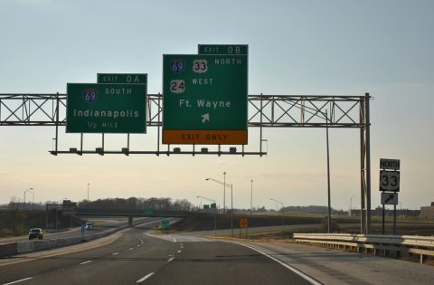 Interstate 469 encircles Indiana’s second largest city from I-69 south of Fort Wayne to I-69 north of the city. The bypass basically serves local traffic by providing a high speed option to the eastern reaches of the Fort Wayne metropolitan area. Interstate 69 runs along the west side of the city.
