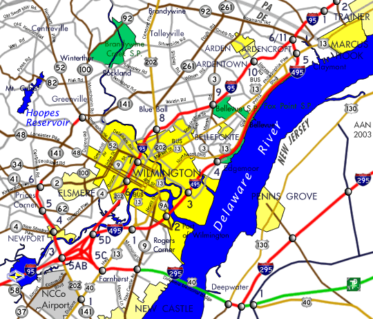 I-495 advances southwest to I-95/295 near Newport, DE.