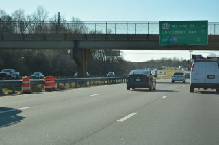 I-95 heads two miles south from Upper Chichester Twp, PA to I-495 in Delaware.