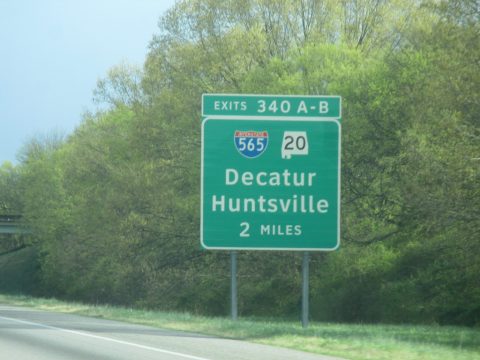 Interstate 565 constitutes a freeway leading east from I-65 and U.S. 72 Alternate at the city of Decatur to Madison, Huntsville and U.S. 72 across Chapman Mountain. I-565 directly replaced portions of U.S. 72 Alternate and Alabama State Route 20. Completion of the freeway fueled growth in the Huntsville area in conjunction with research at NASA’s Marshall Space Flight Center and the Redstone Arsenal.