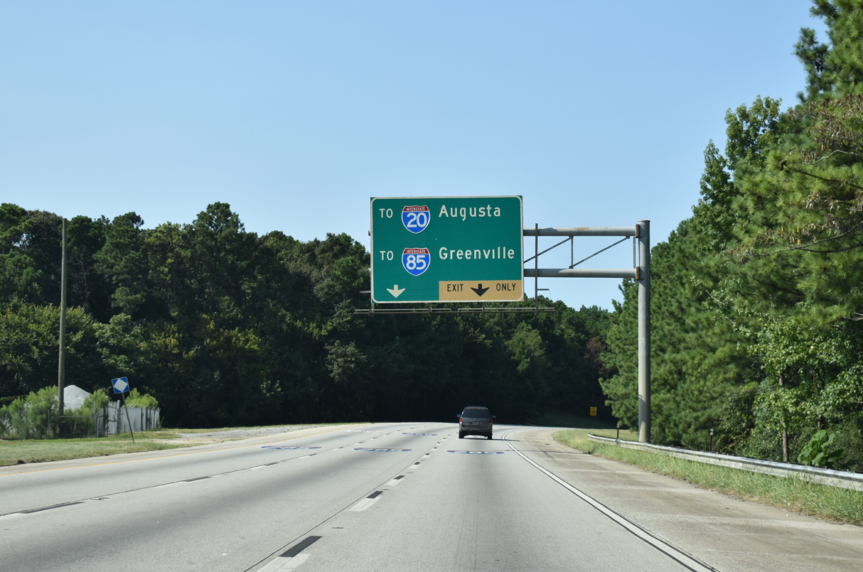 Interstate 285 serves regional traffic to I-20 east for Augusta and I-85 north for Greenville. The outer loop of I-285 reaches the Tom Moreland Interchange with Interstate 85 in 19 miles. 09/22/22