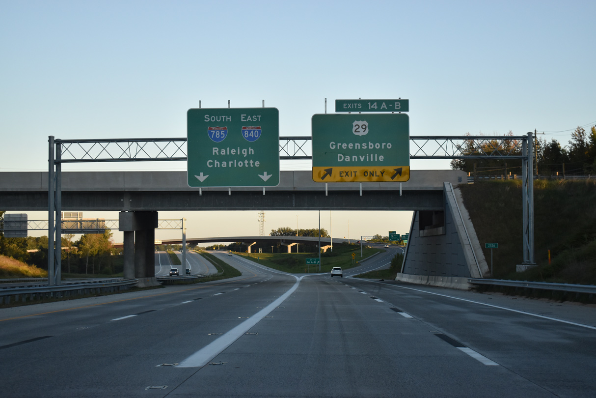 U.S. 29 south at the beginning of I-785 and I-840 east in Greensboro, NC